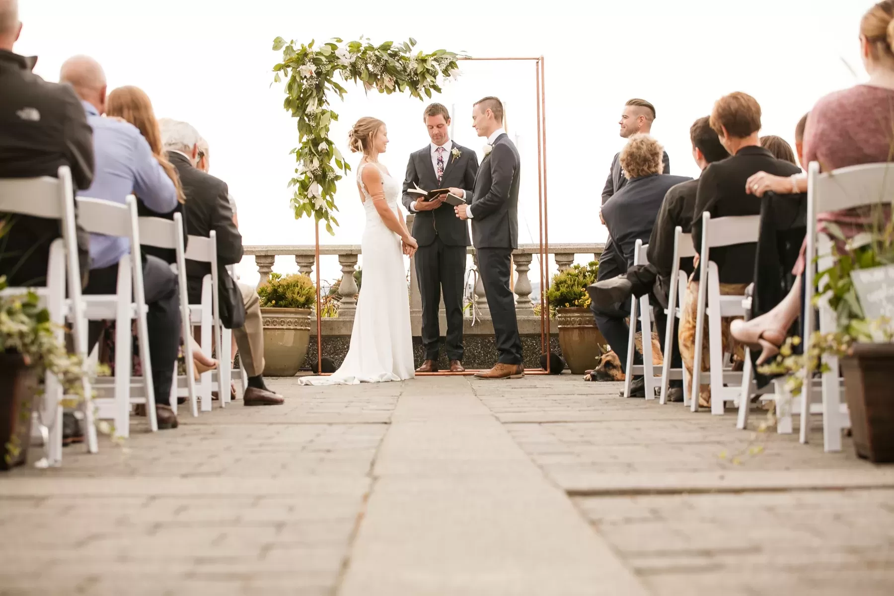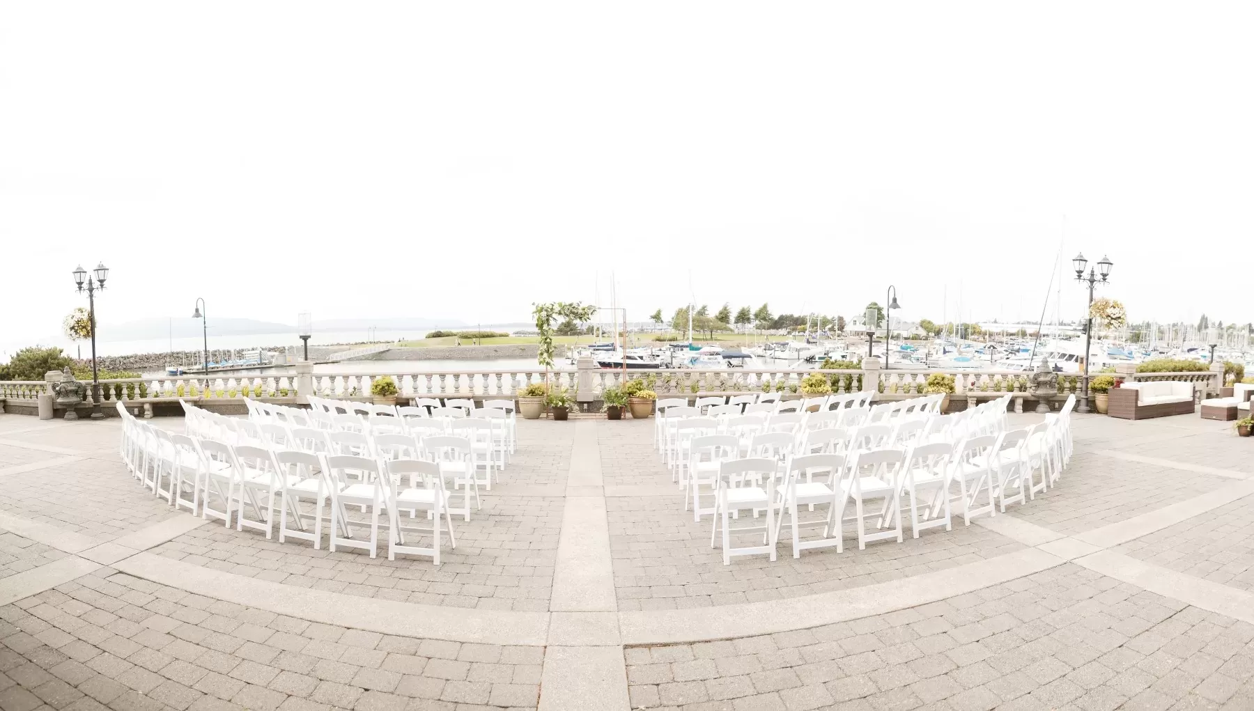 Hotel Bellwether's Waterview Terrace is the perfect place for an outdoor wedding ceremony or outdoor reception event up to 250 guests with a breathtaking view of Bellingham Bay and Squalicum Harbor.