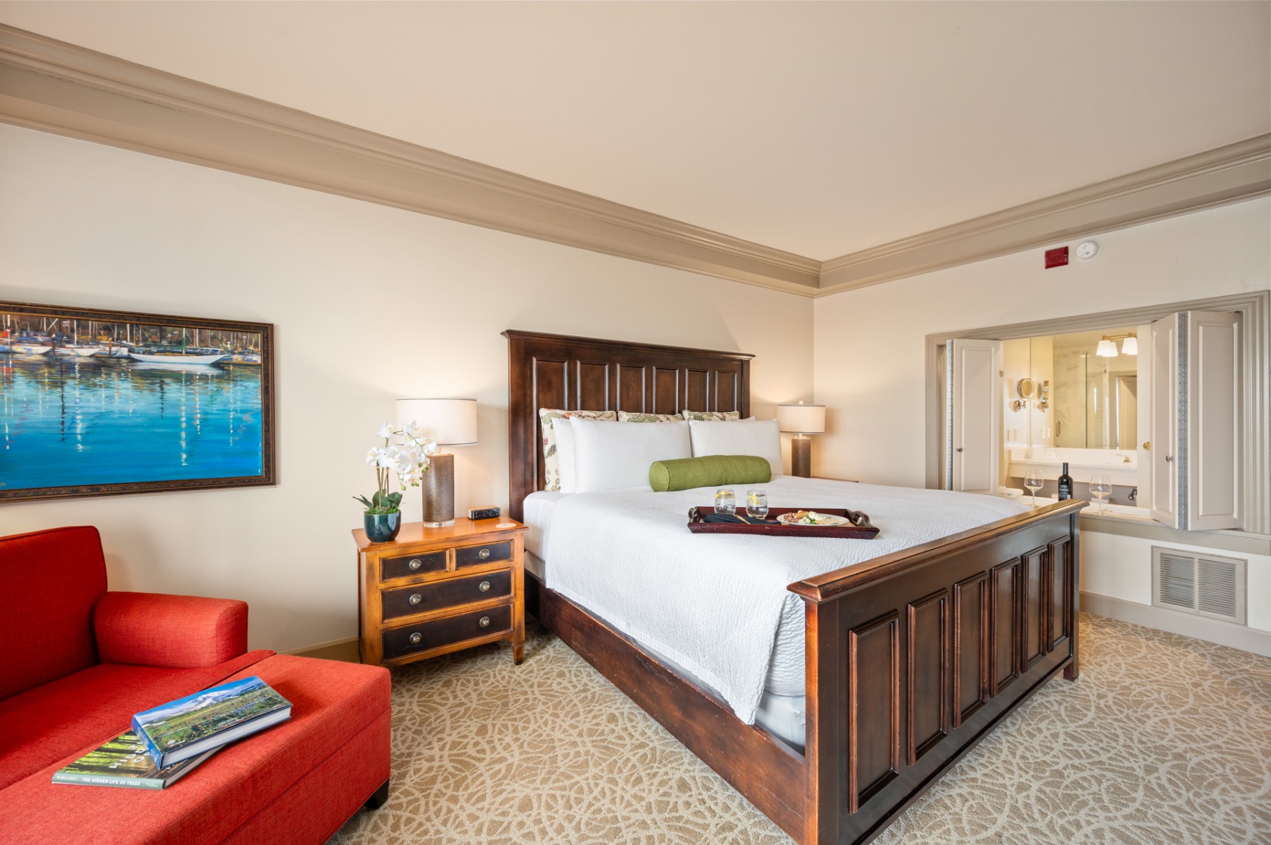 Experience a tranquil getaway in a deluxe luxury suite, featuring incredible views of the Bellingham Bay. Our Premier Bay View Suites were recently updated with new plush furnishings, carpet, and beautiful art by a local artist.