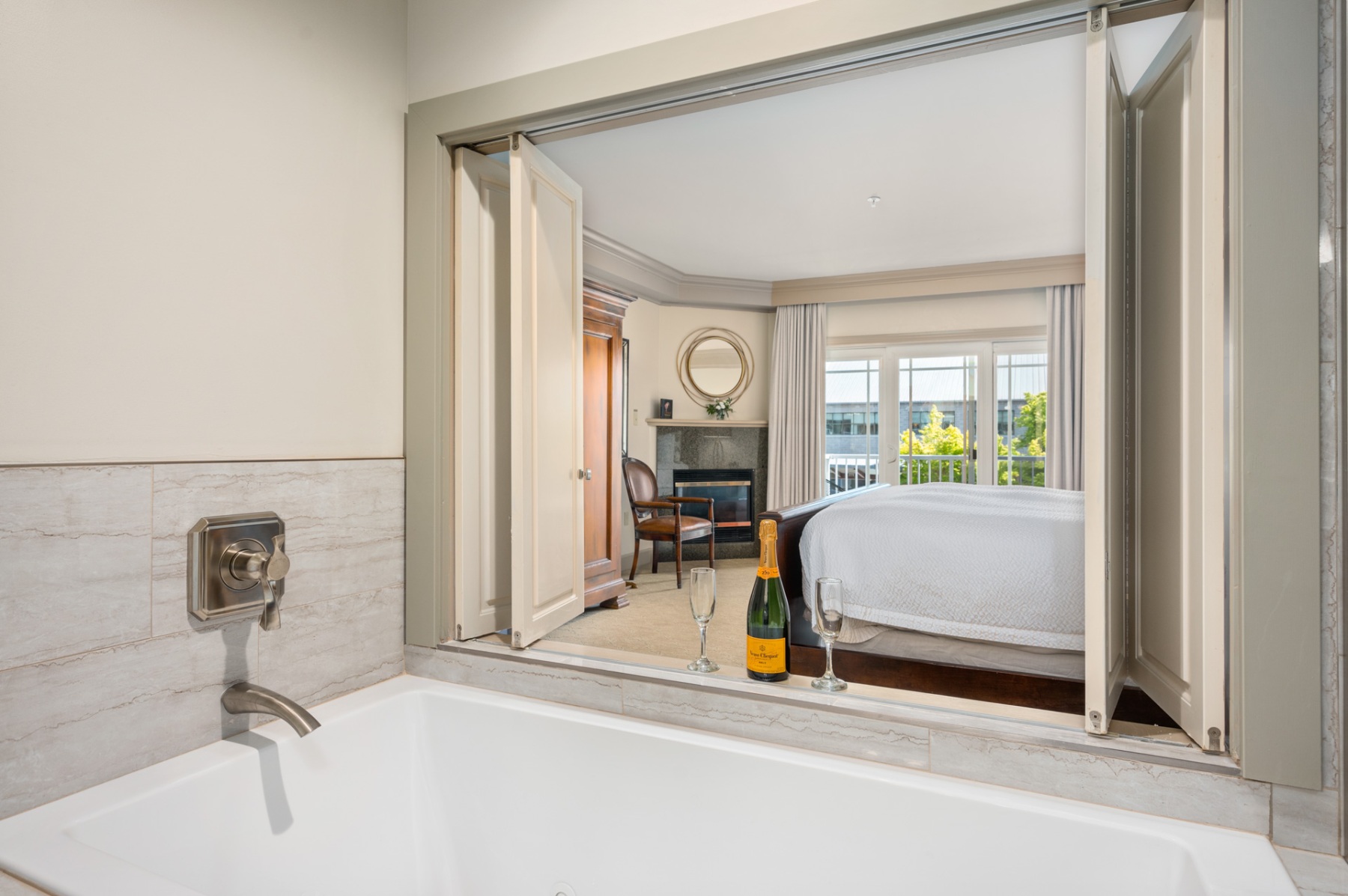 Our signature suites are among our most cherished spaces at the Hotel Bellwether. These rooms feature stunning views of the city, harbor and San Juan Islands. Unmatched amenities include a natural gas fireplace, second story water-view balcony, air-jetted tub and a large marble bathroom.