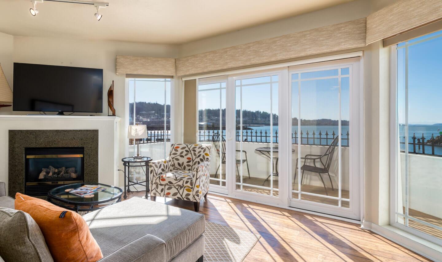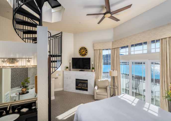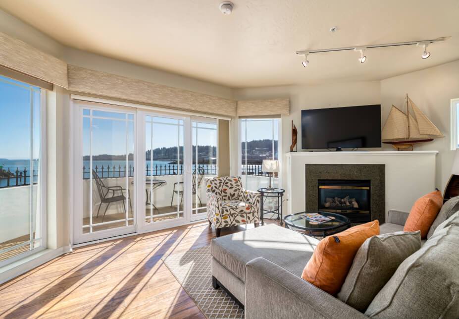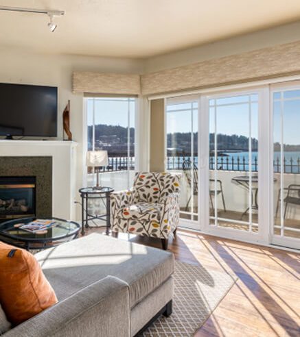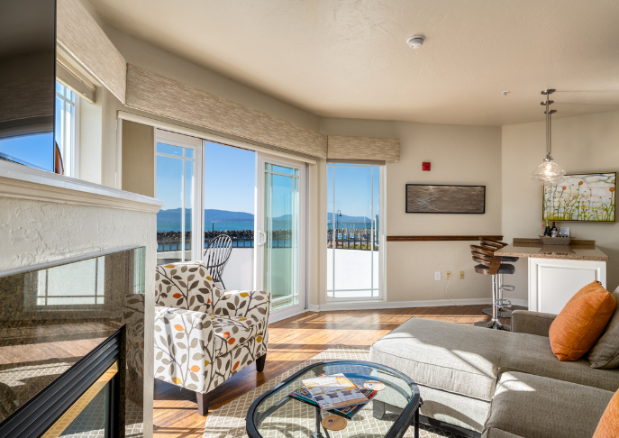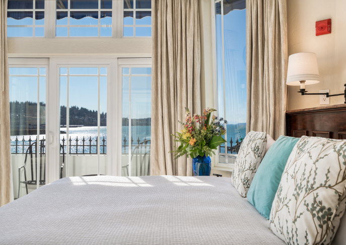 Experience a tranquil getaway in a deluxe luxury suite, featuring incredible views of the Bellingham Bay. Our Premier Bay View Suites were recently updated with new plush furnishings, carpet, and beautiful art by a local artist.
