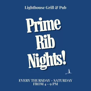Join us for Prime Rib Nights at the Lighthouse Grill & Pub from 4 - 9 PM.
